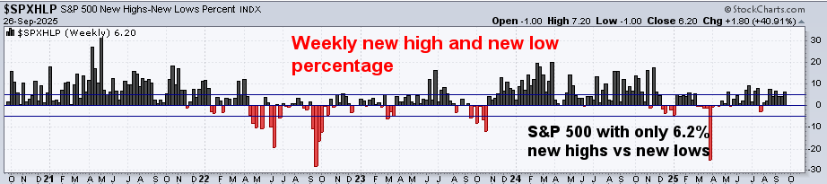 I’m starting to think that the lack of new 52-week highs, despite indexes being near all-time highs, is more calendar-related. Would love your thoughts. Only 6.2% of the S&P hit 52-week highs and remain muted.