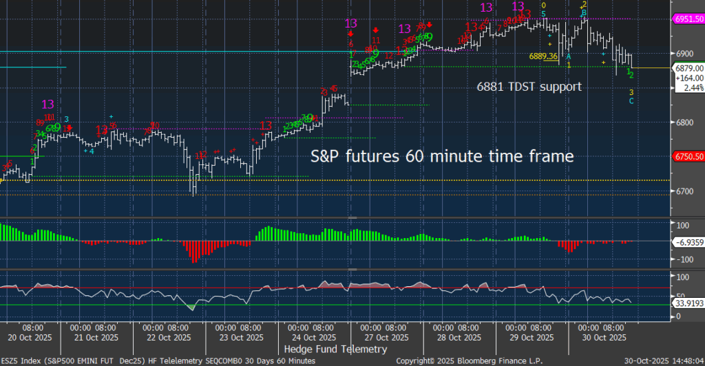S&P futures 60-minute tactical time frame at the TDST Setup Trend support