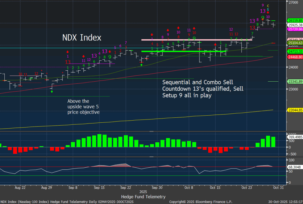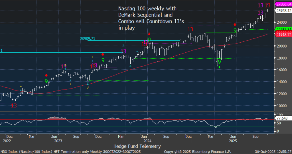 Nasdaq 100 Index daily and weekly sell signals in play.