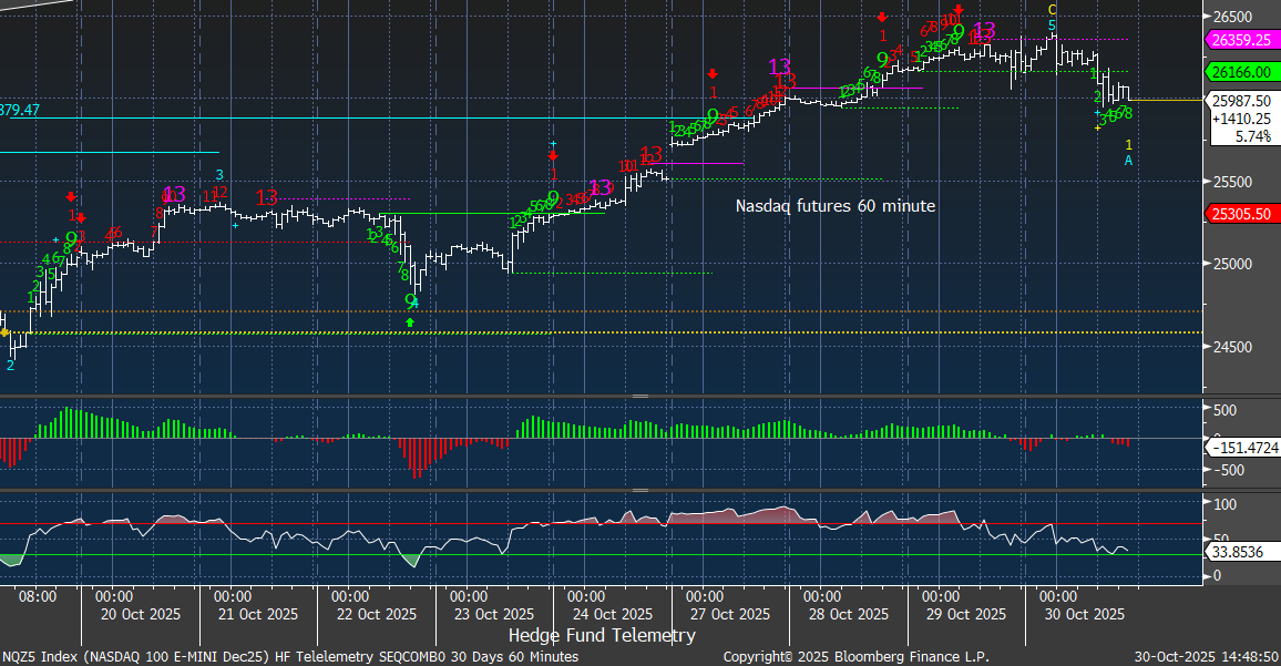 Nasdaq 100 futures 60-minute tactical time frame broke the TDST support with Setup on hour bar 8 of 9. Continuation lower will see the start of a new Sequential and yes there is potential for a bounce too