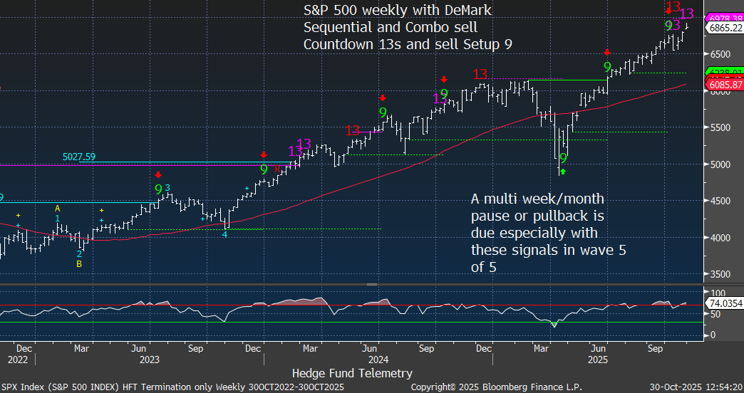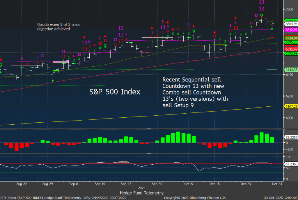 S&P 500 Index daily and weekly with recent DeMark sell signals in play