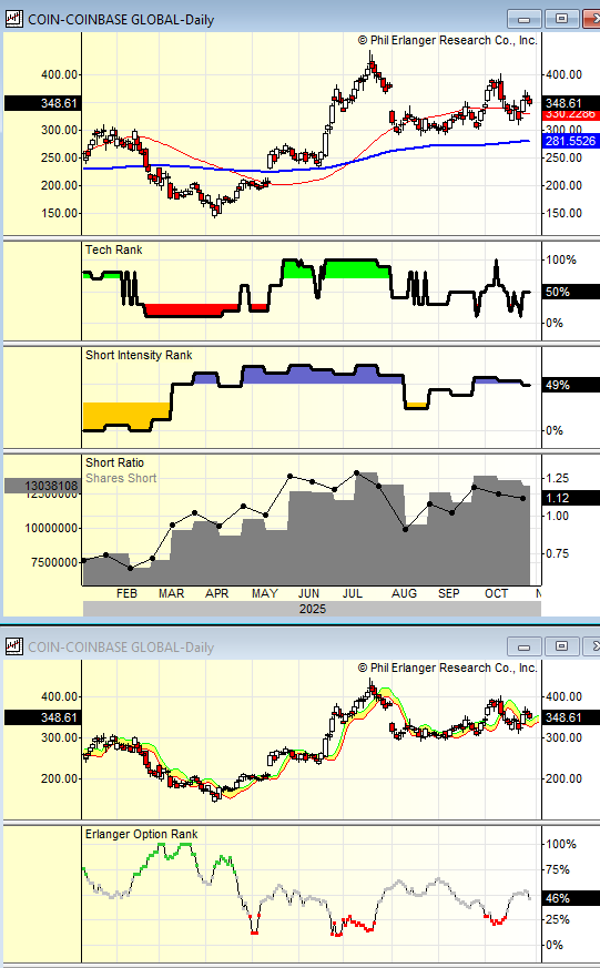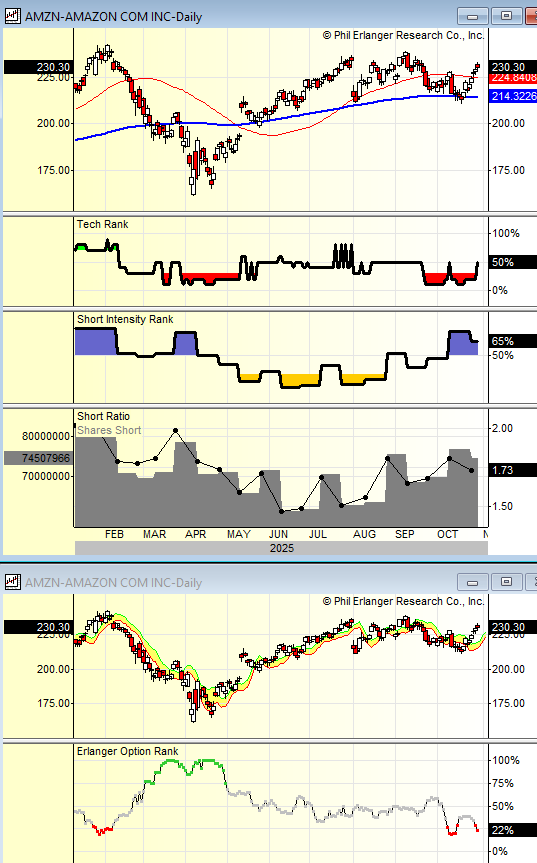Short interest remains steady with only a 1 day to cover. On the Options Rank on the bounce there was call buying with the red dots and that has moderated to more neutral.