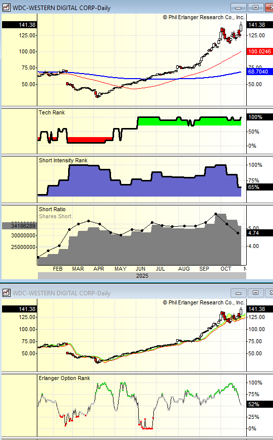 WDC Western Digital has moved up by more than double and was up yesterday after STX lifted. I’m a little concerned about this one being short however this might be priced in and fall short of the high implied move and not duplicate the move yesterday.