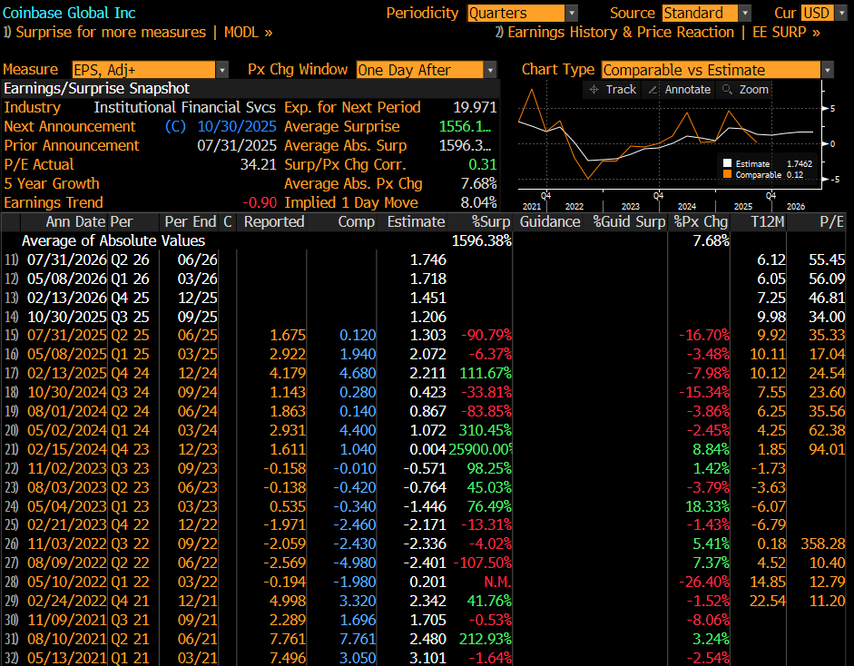 The implied move is 8% and has seen some nasty drops in the past 6 quarters.