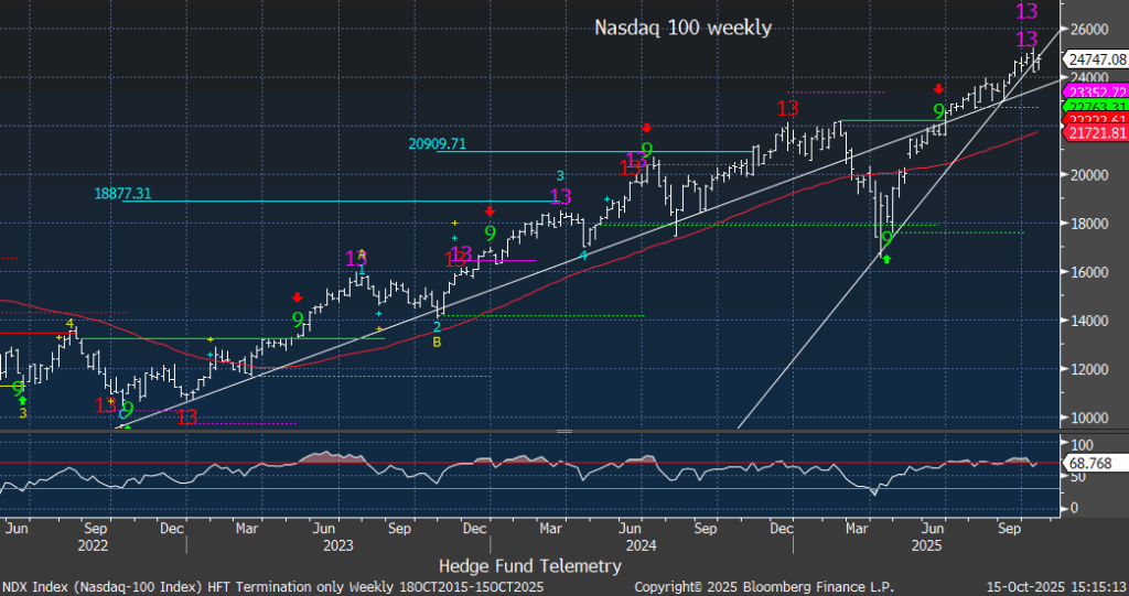 Nasdaq 100 weekly with Combo 13’s slightly breaking the recent trendline