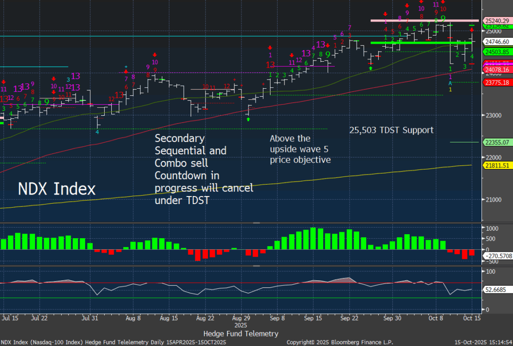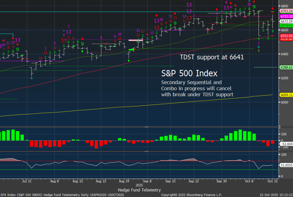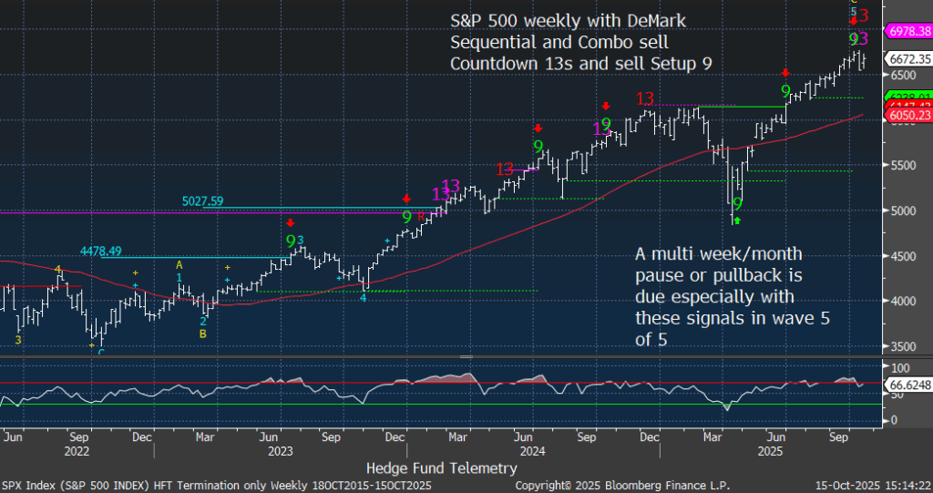 S&P weekly with DeMark Sequential and Combo sell Countdown 13’s and sell Setup 9. TDST Setup Trend support at 6238