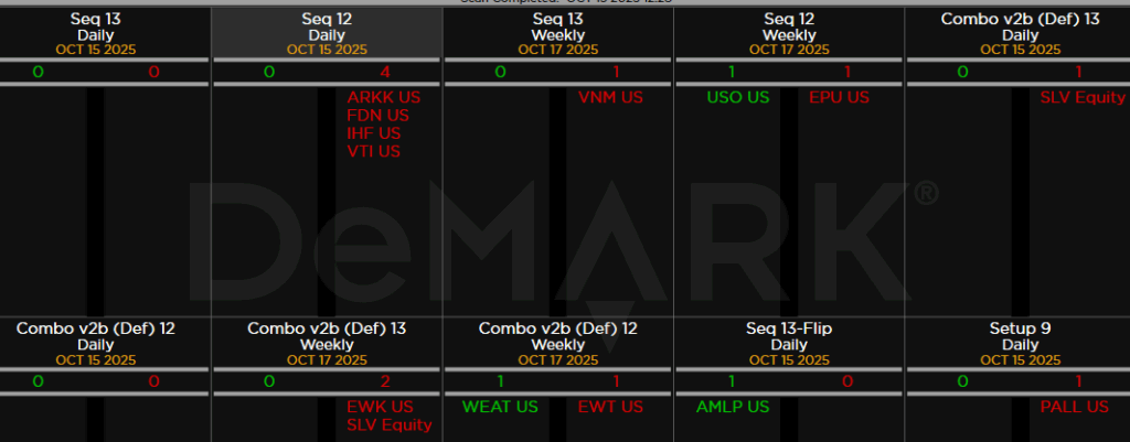 Major ETFs among a 160+ ETF universe. SLV Combo 13 daily. ARKK with Sequential on day 12 of 13