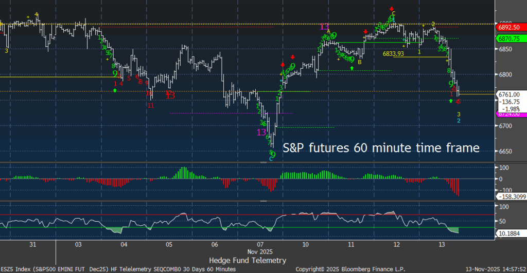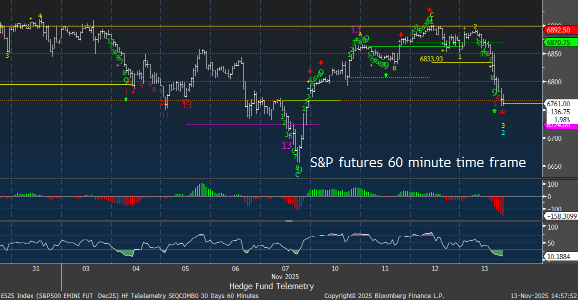 S&P futures 60-minute tactical time frame with new downside Sequential in progress and above the November 7th low.