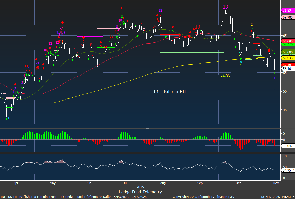 IBIT Bitcoin ETF making a new recent low possibly trapping 5 months of buyers. In downside wave 3 of 5