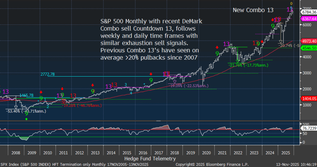 Tom Lee, a CNBC financial pundit, has raised a boatload of capital for his ETFs. Going on TV each day with the same message to buy stocks seems to have worked. Kudos to him, however, it might not be done topping with recent DeMark Sequential and Combo 13’s at the upside wave 5 top.