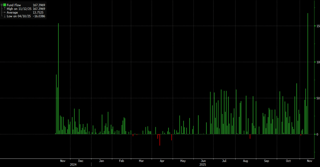 “Hi Grandma, I just put all your money in this ETF called Granny shots.” Largest inflow since inception yesterday. Risk of trapping people if the ETF falls more.