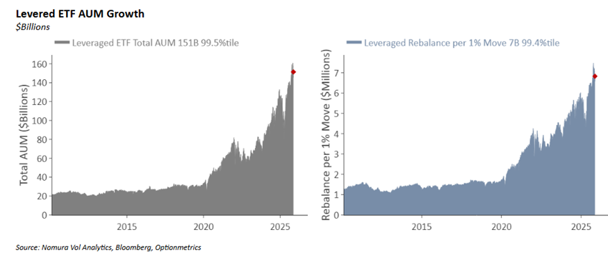 Charlie from Nomura has a way of highlighting his comments in his notes with green/red comments. It’s almost you can just look at the color and know his view. A lot of red today. He has been all over the risk with the levered ETFs.
