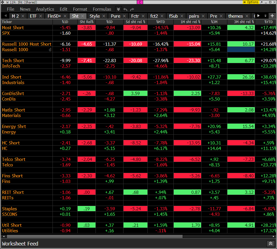 This monitor has the S&P indexes and the Goldman Sachs most shorted baskets. Short baskets are down hard. Most shorted tech down 9.99%