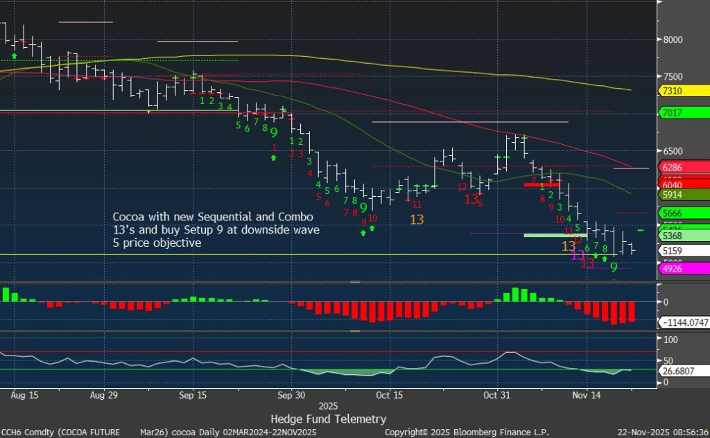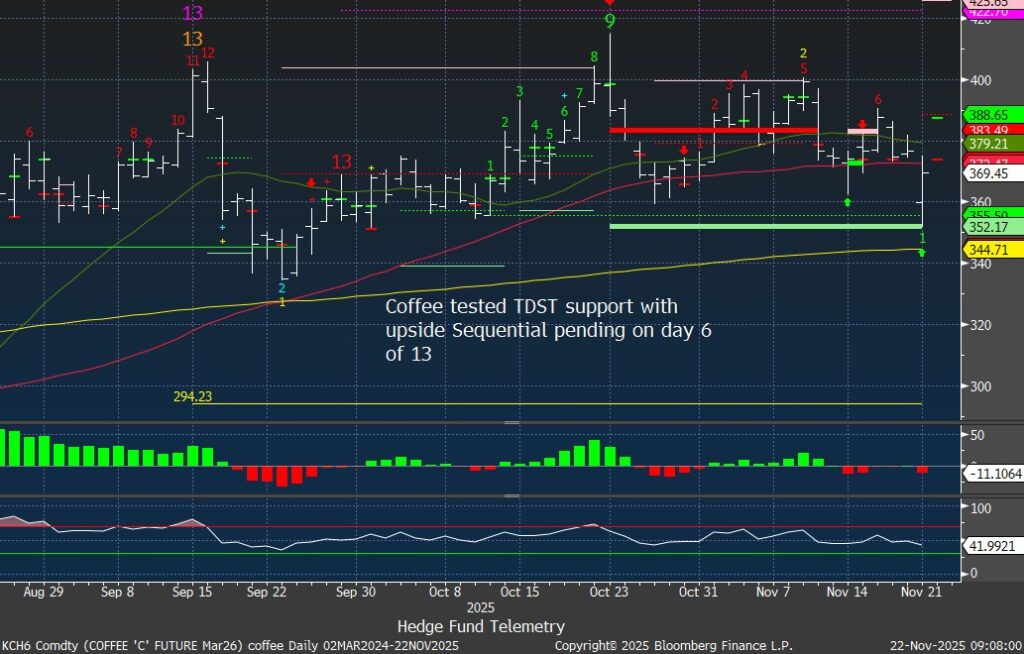 Coffee futures daily re-tested the TDST support on Friday but closed off lows and above the open