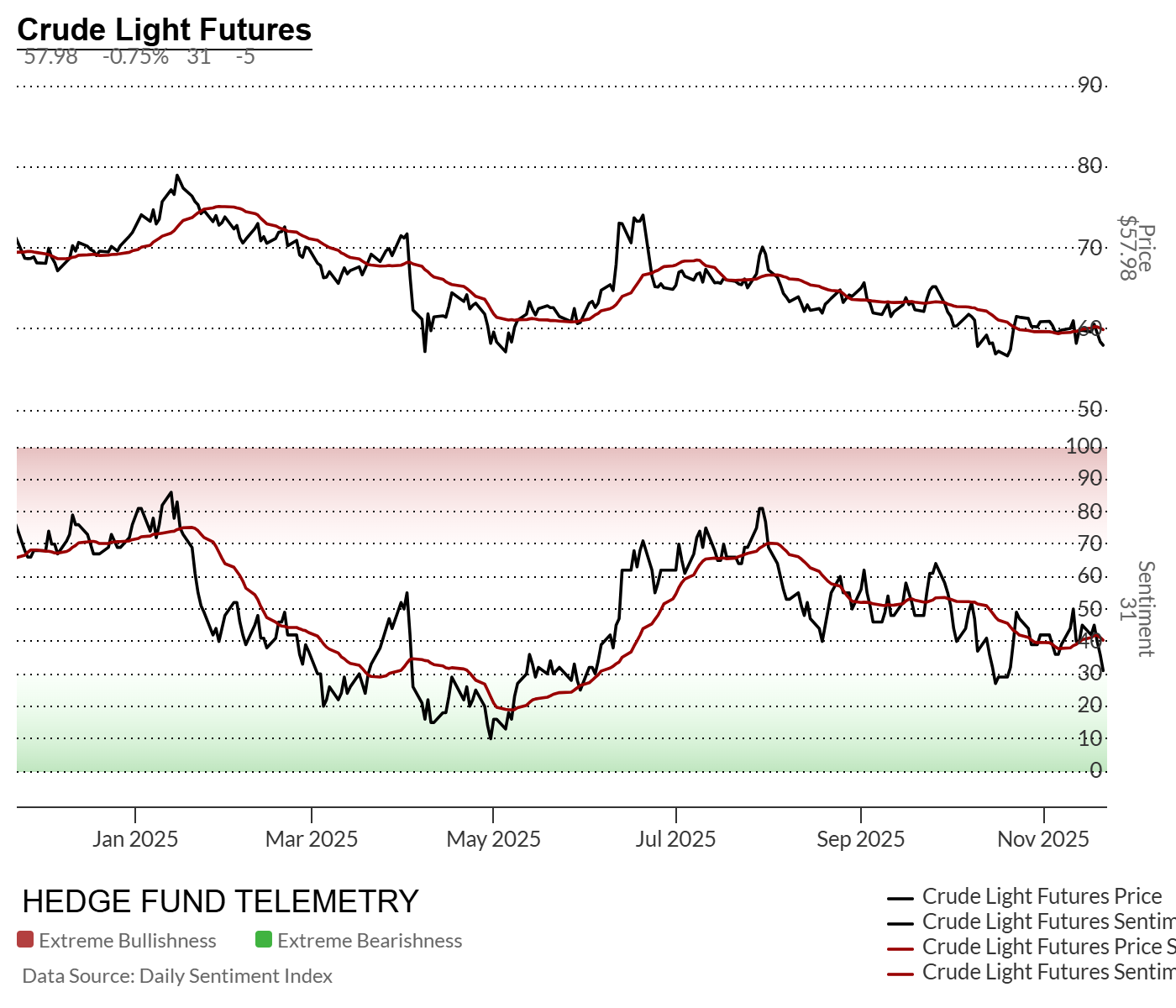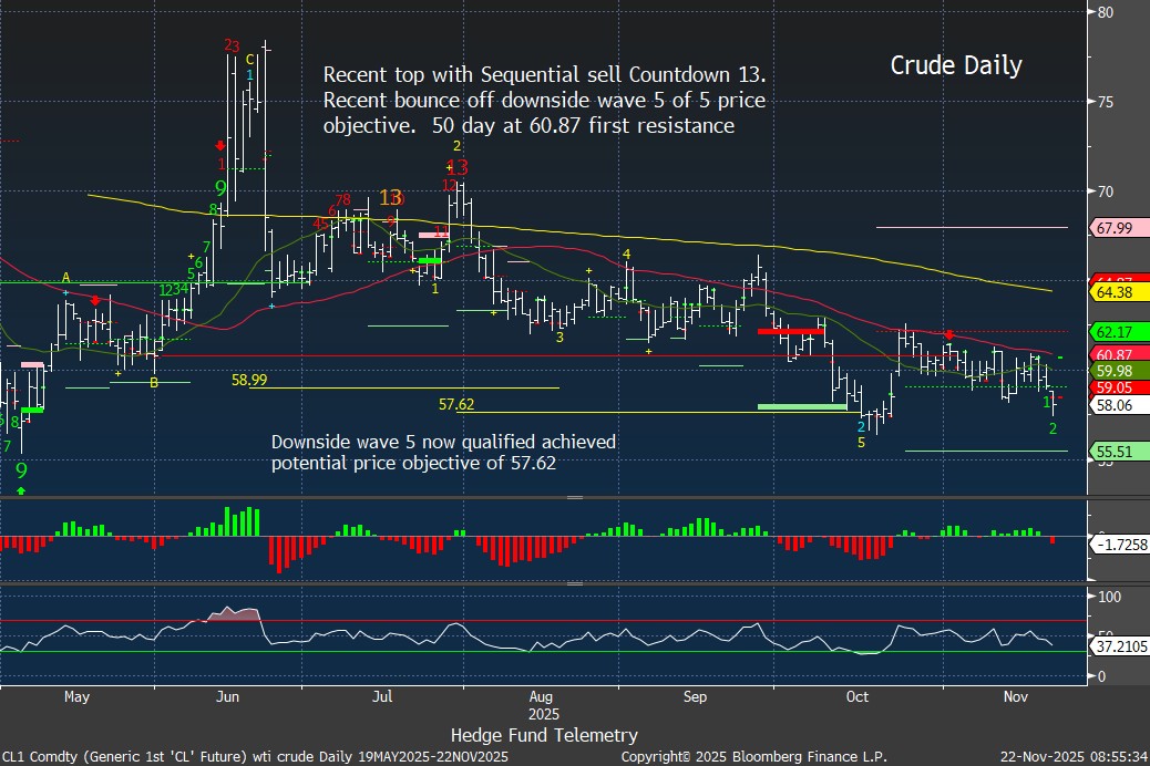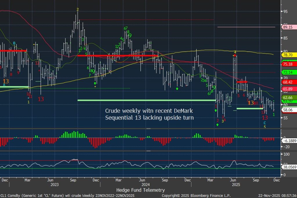 WTI Crude futures daily remains under pressure lacking a turn above the 50 day. Until that happens this is dead money