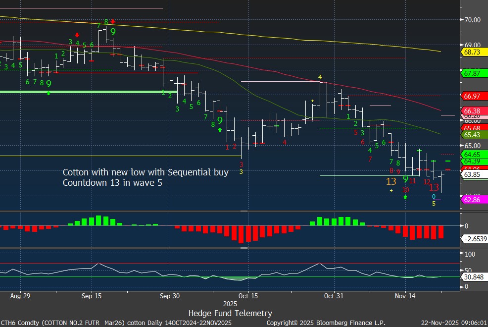Cotton futures daily with new Sequential buy Countdown 13. Potential reversal due