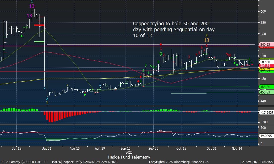 Copper futures daily holding 50 and 200 day with upside Sequential still pending
