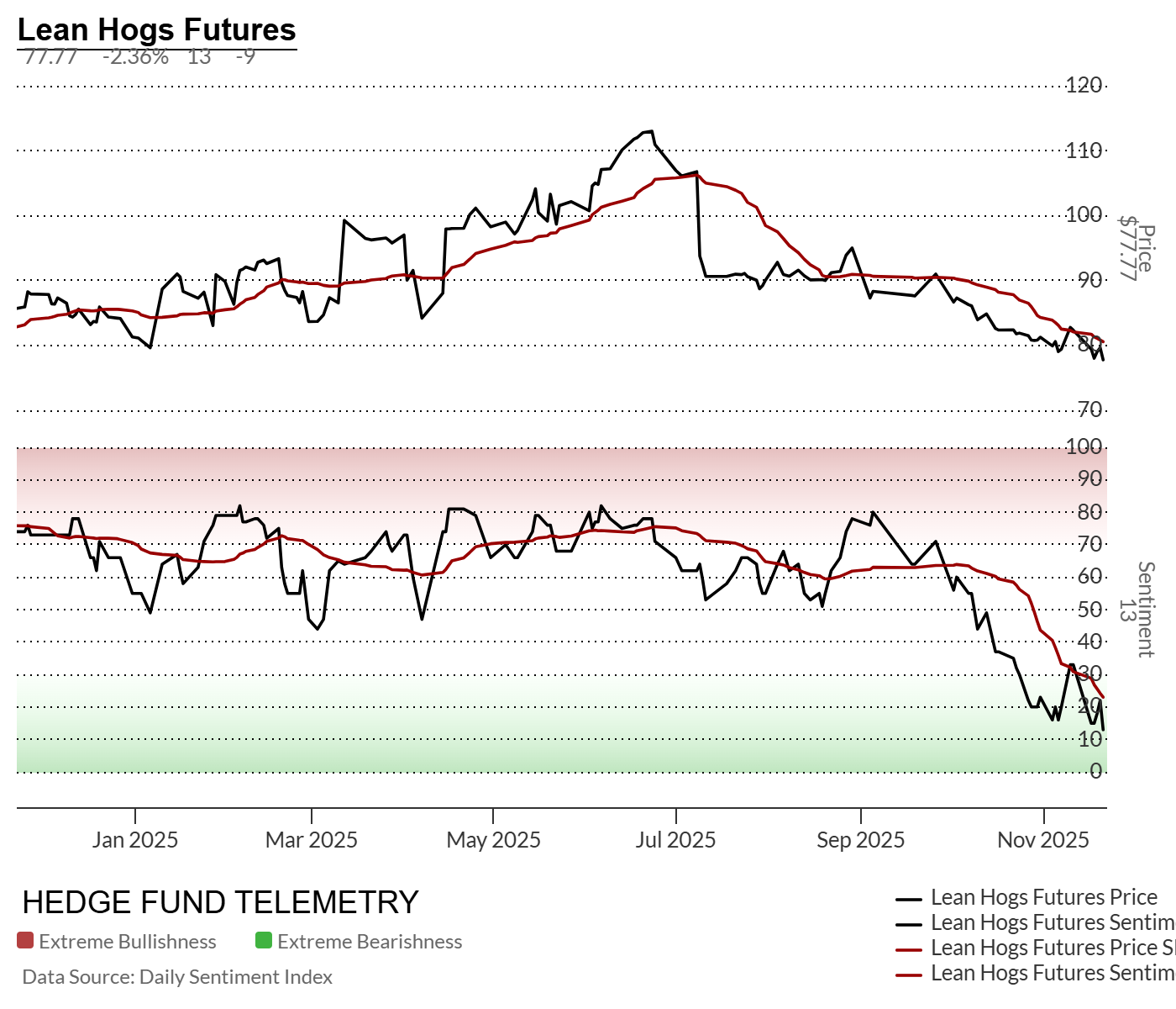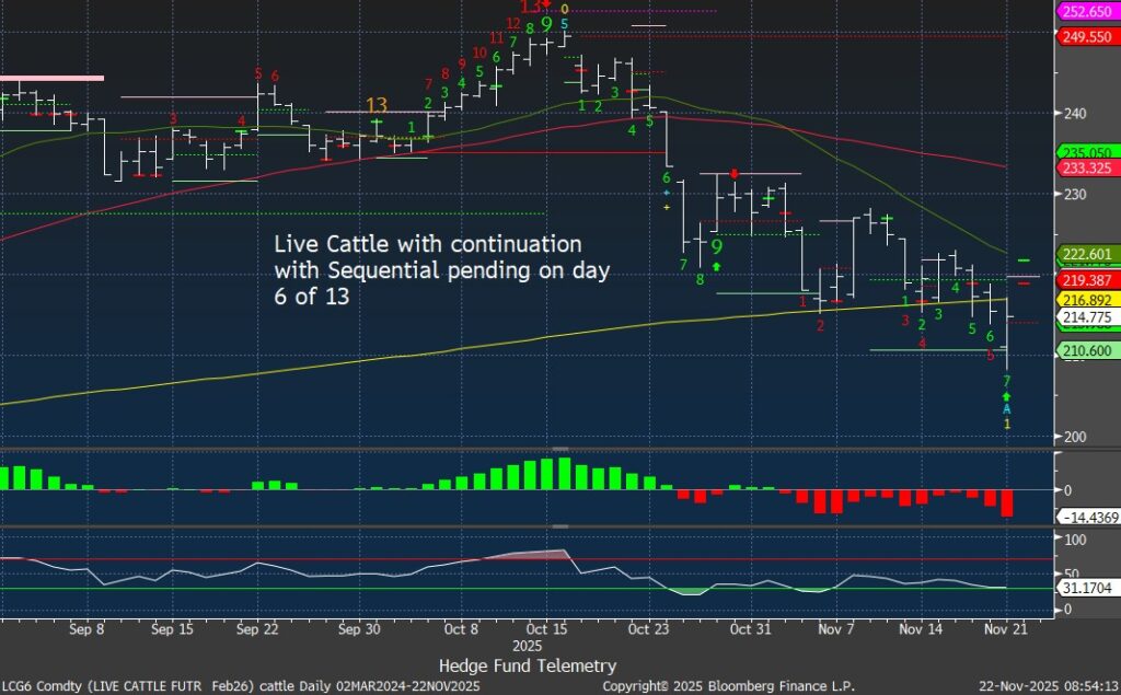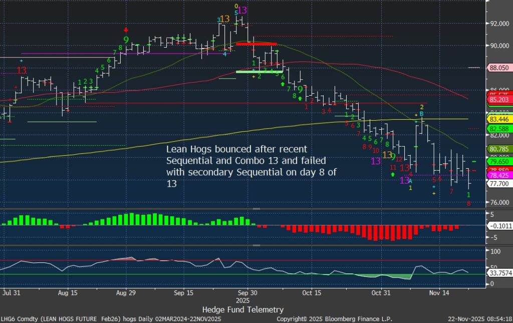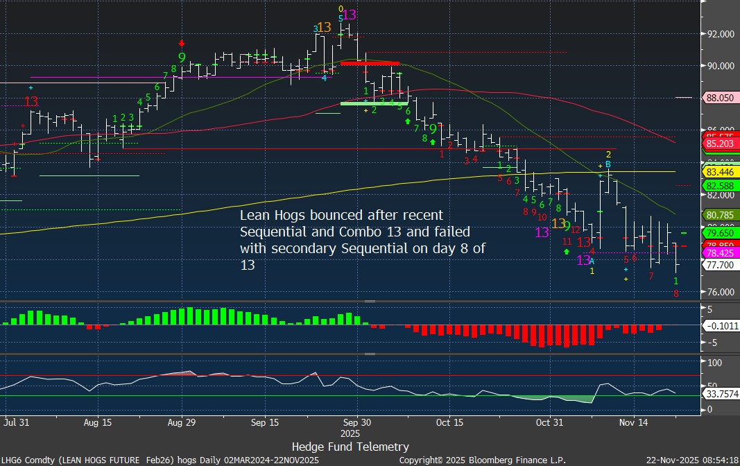 Lean Hogs futures daily still with Sequential on day 8 of 13