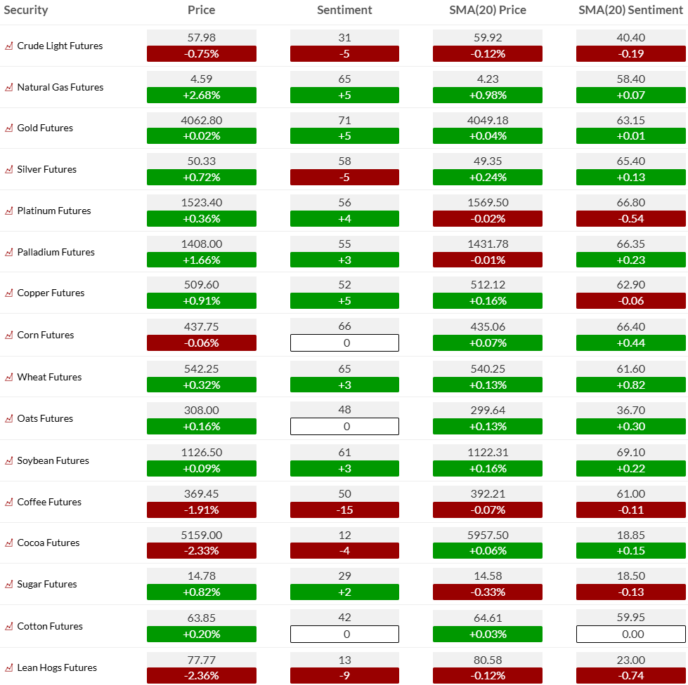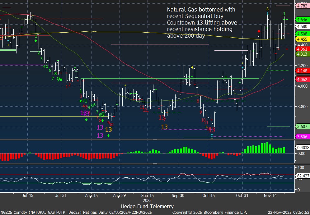 - Energy is mixed with Crude, still failing to clear the 50-day, while Natural Gas remains steady on the upside.