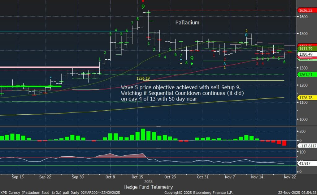 Platinum daily with downside Sequential in progress larger support at TDST at 1380