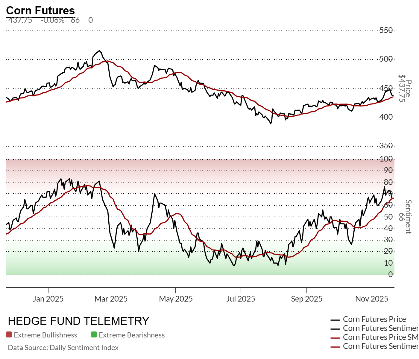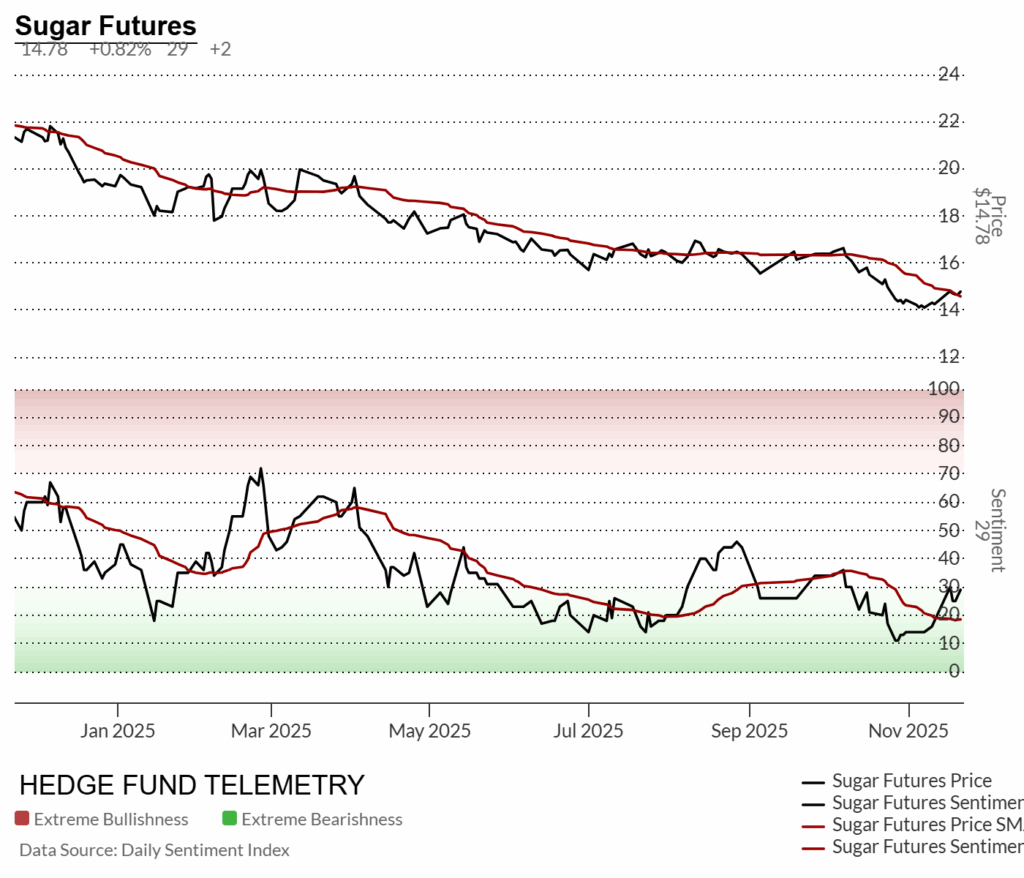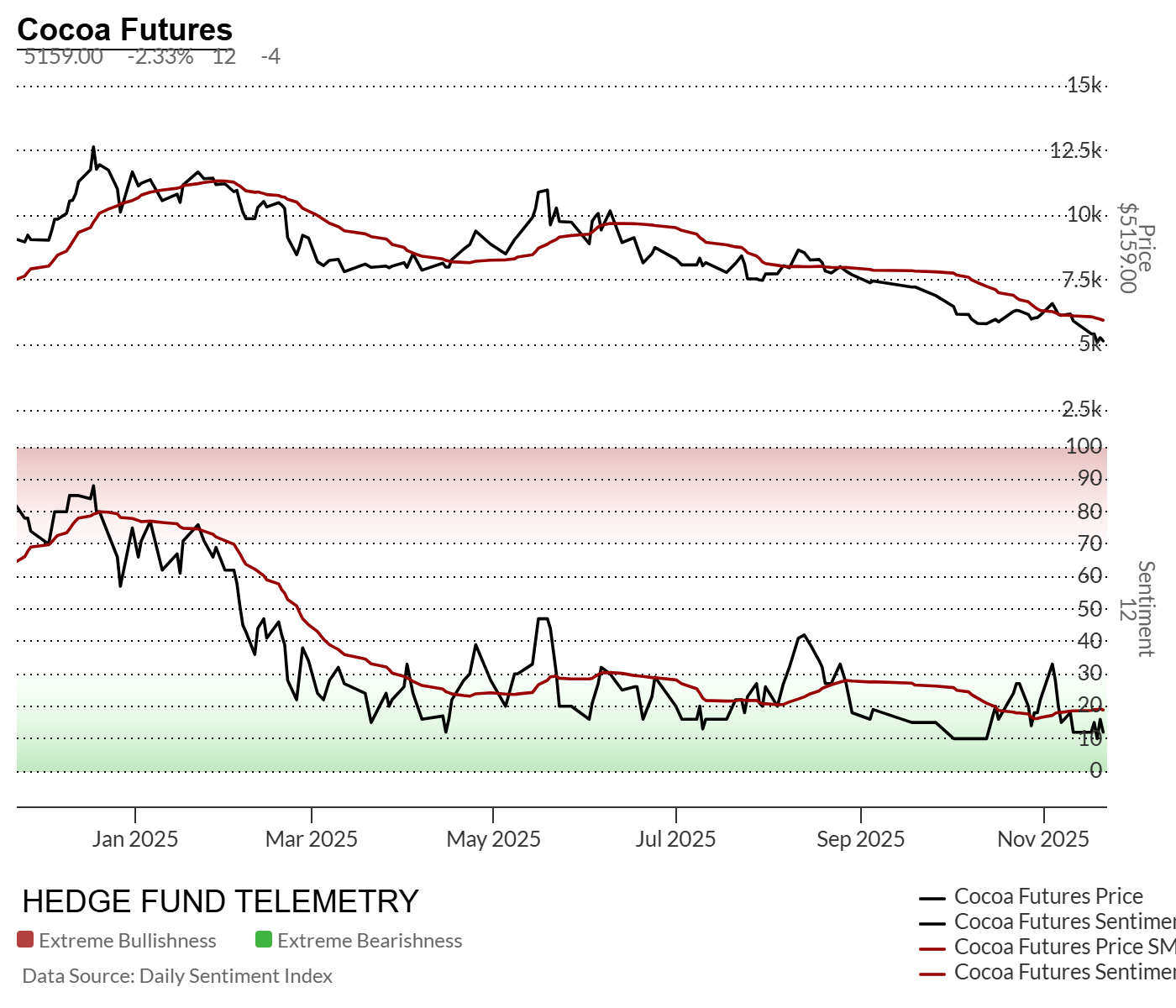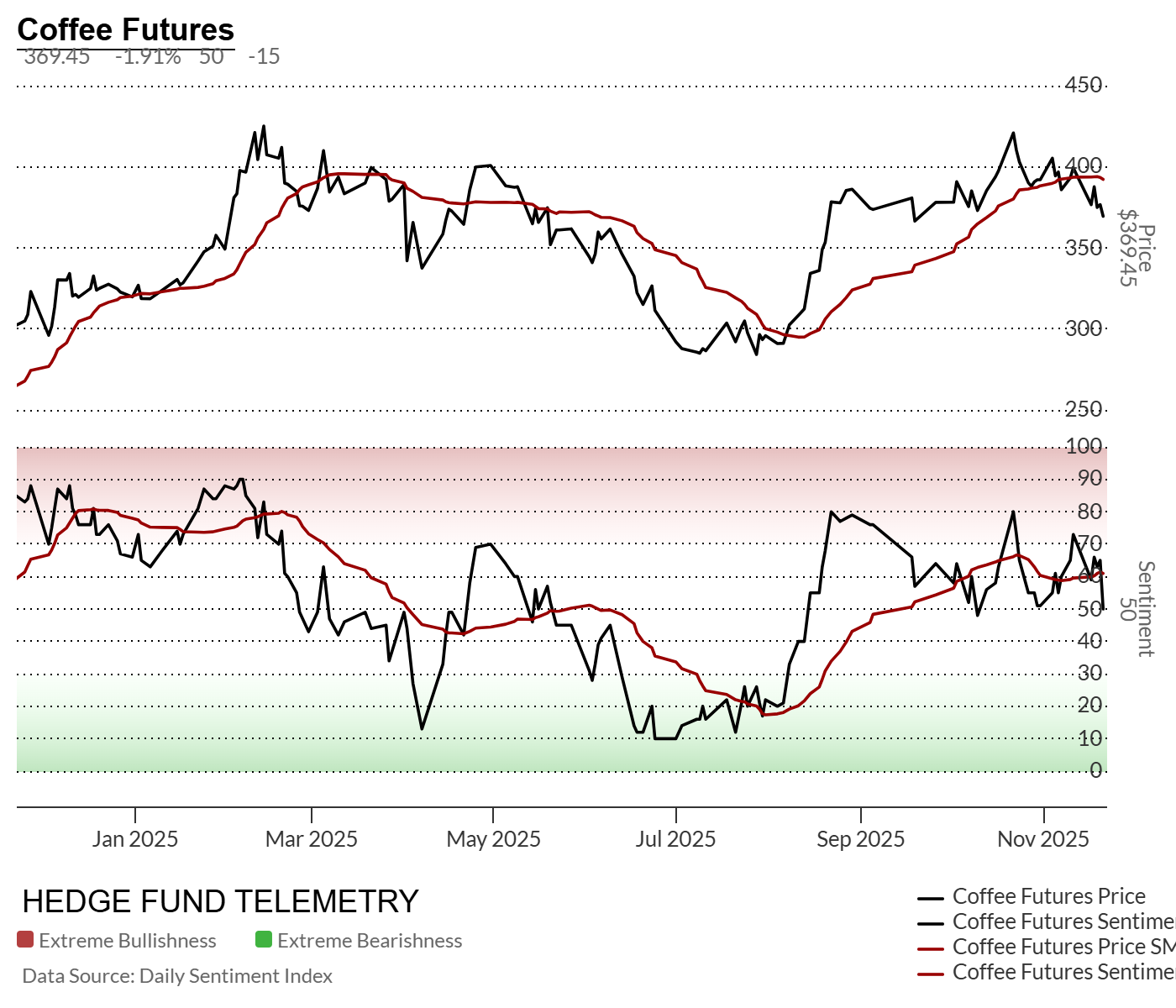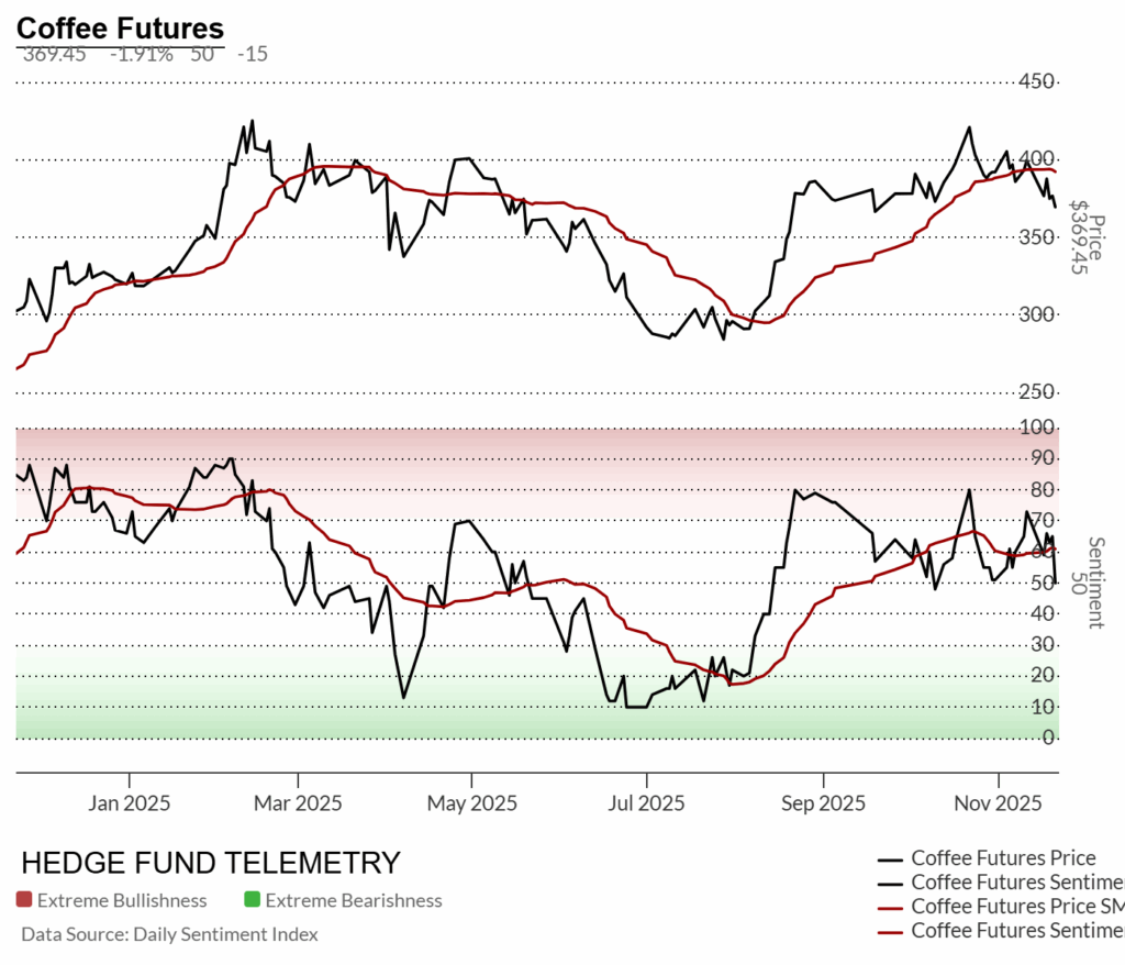 Coffee futures bullish sentiment back to the 50% midpoint level again