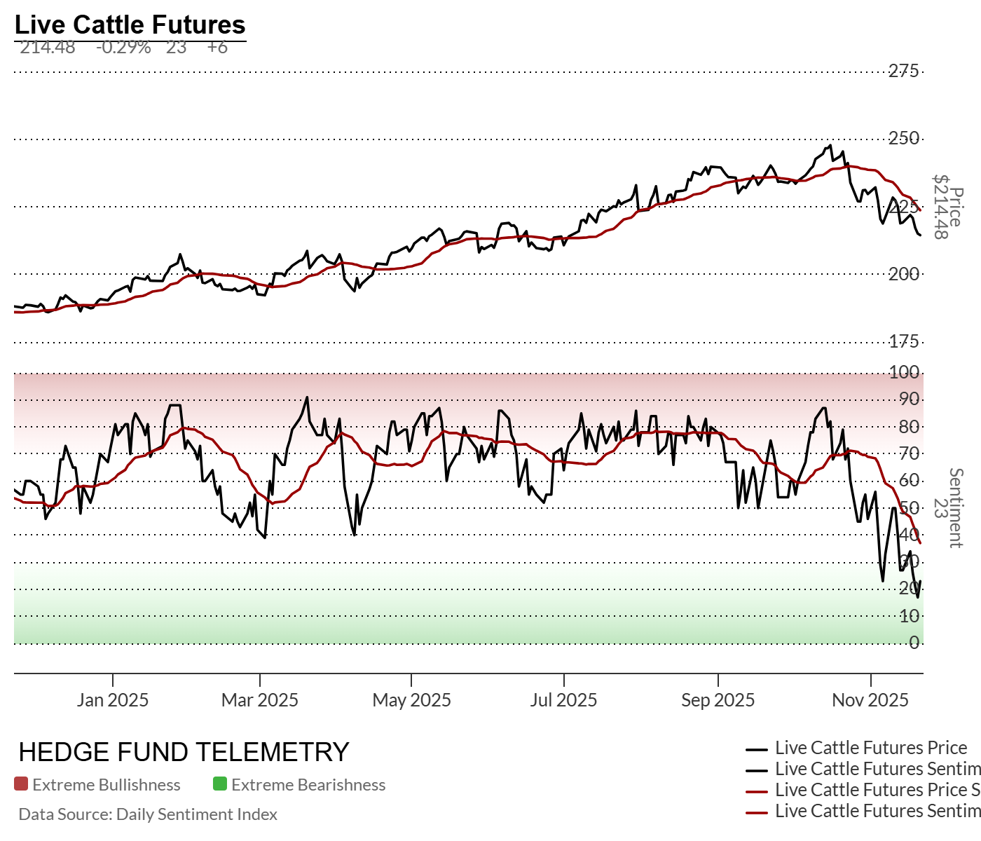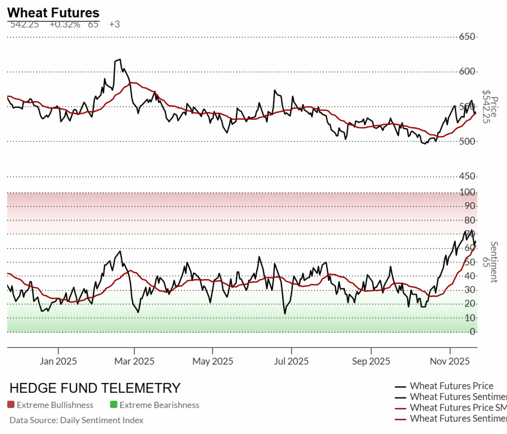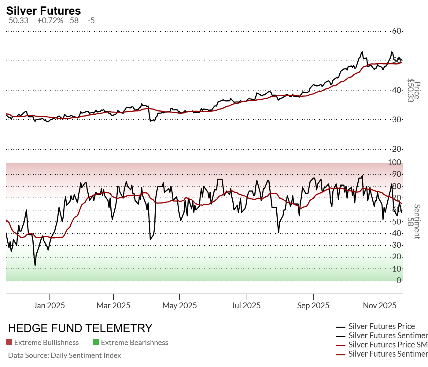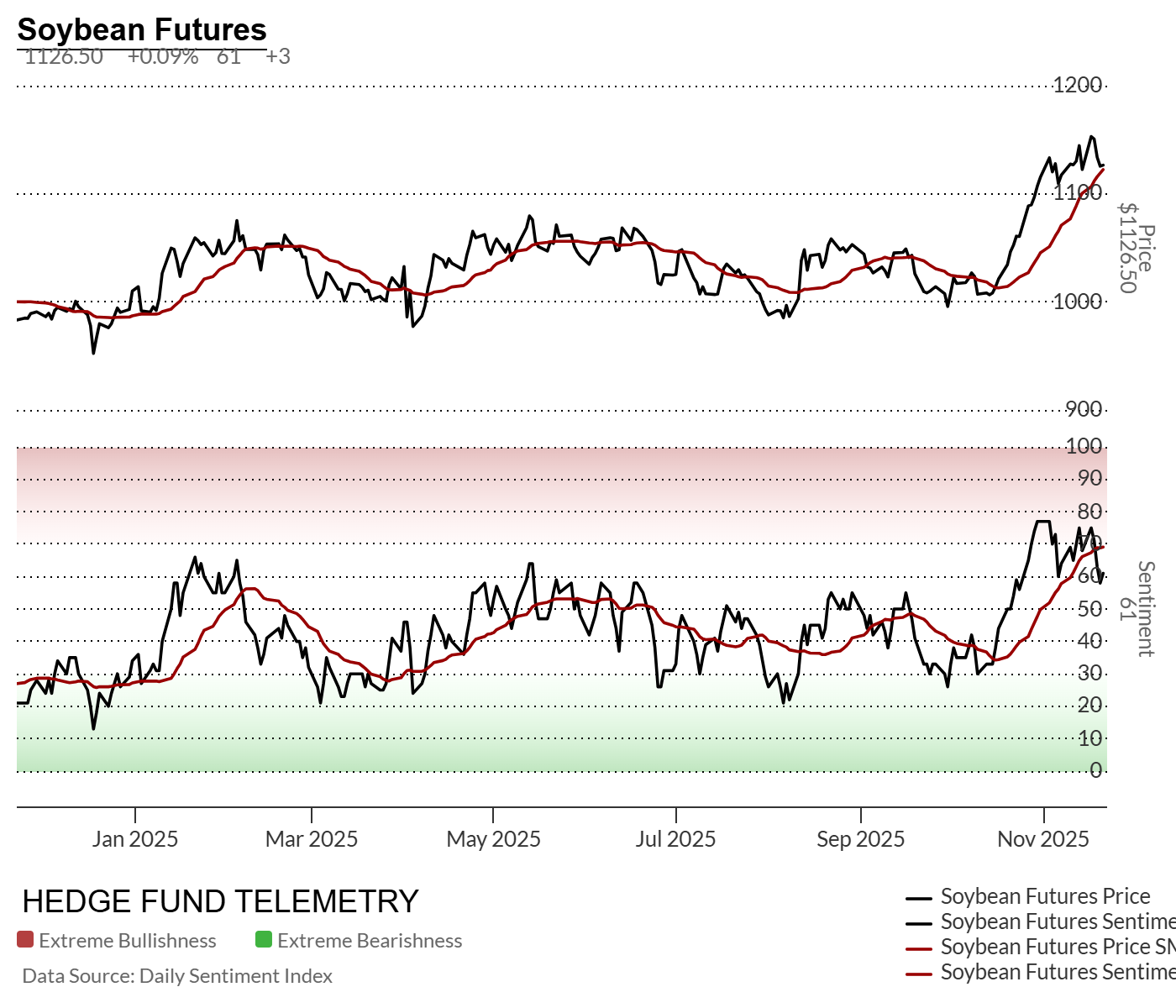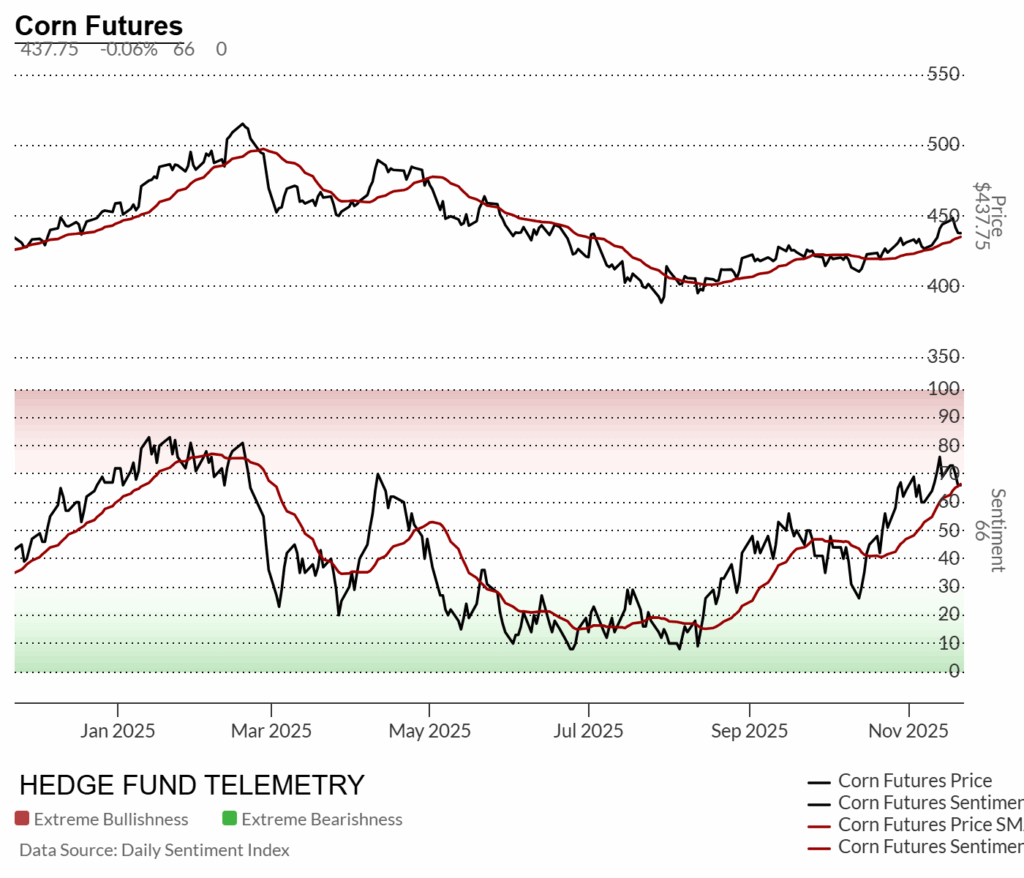 Coffee futures bullish sentiment back to the 50% midpoint level again