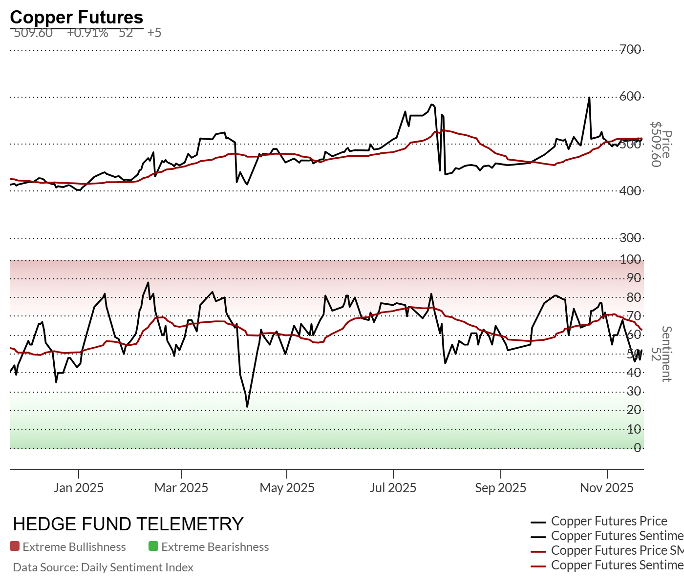 Copper futures bullish sentiment trying to hold the 50% midpoint level
