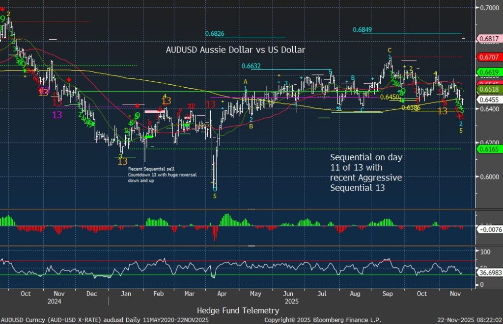 AUDUSD Australian Dollar / US Dollar with Sequential on day 11 of 13 range bound