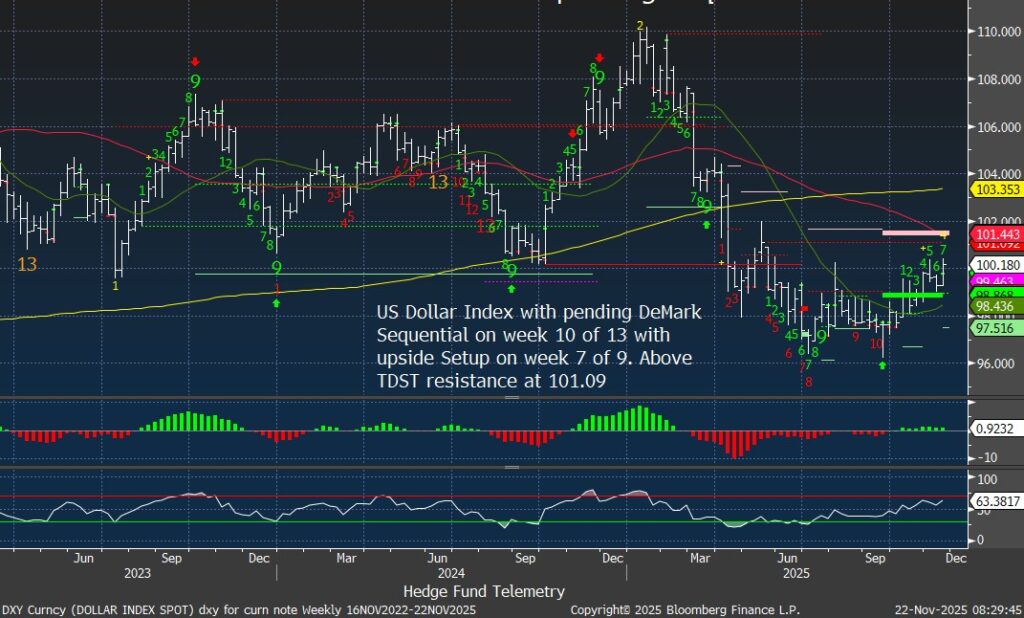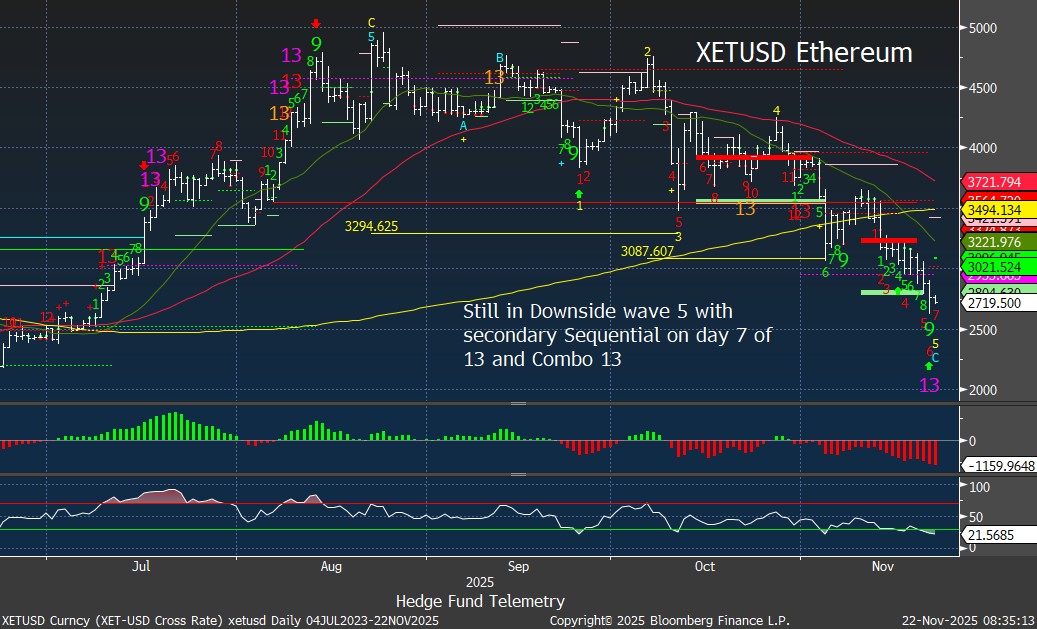 - Crypto remains under pressure with downside Sequential Countdowns in progress; bounces will occur, but risk remains.