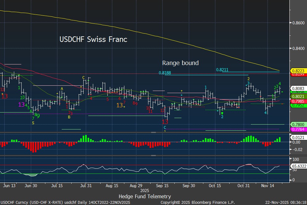 - Dollar crosses are range-bound, with potential for weakness amid a trend of lower sentiment.