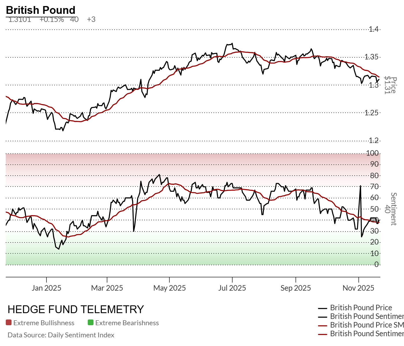 British Pound Sterling bullish sentiment still under 50% midpoint level