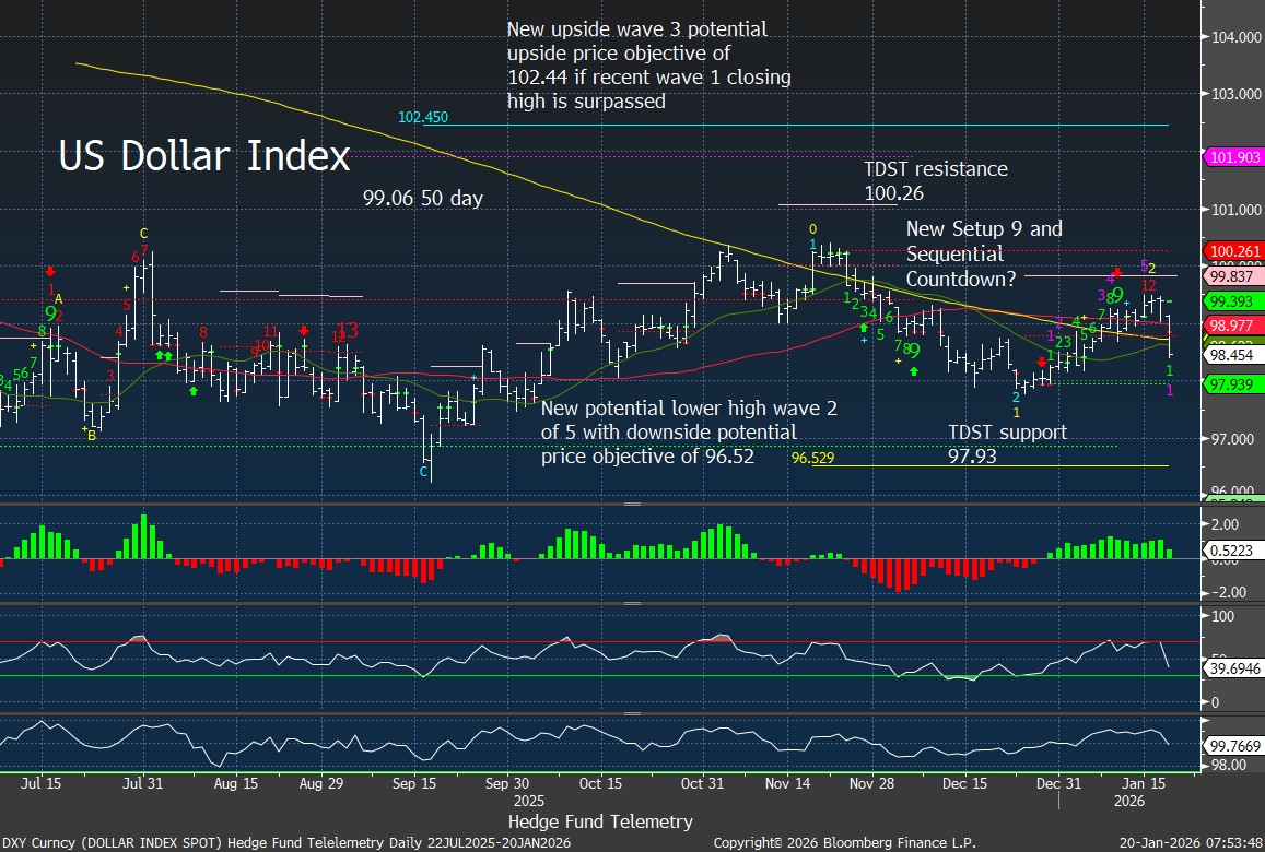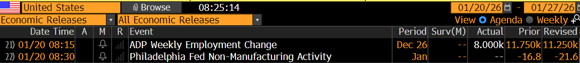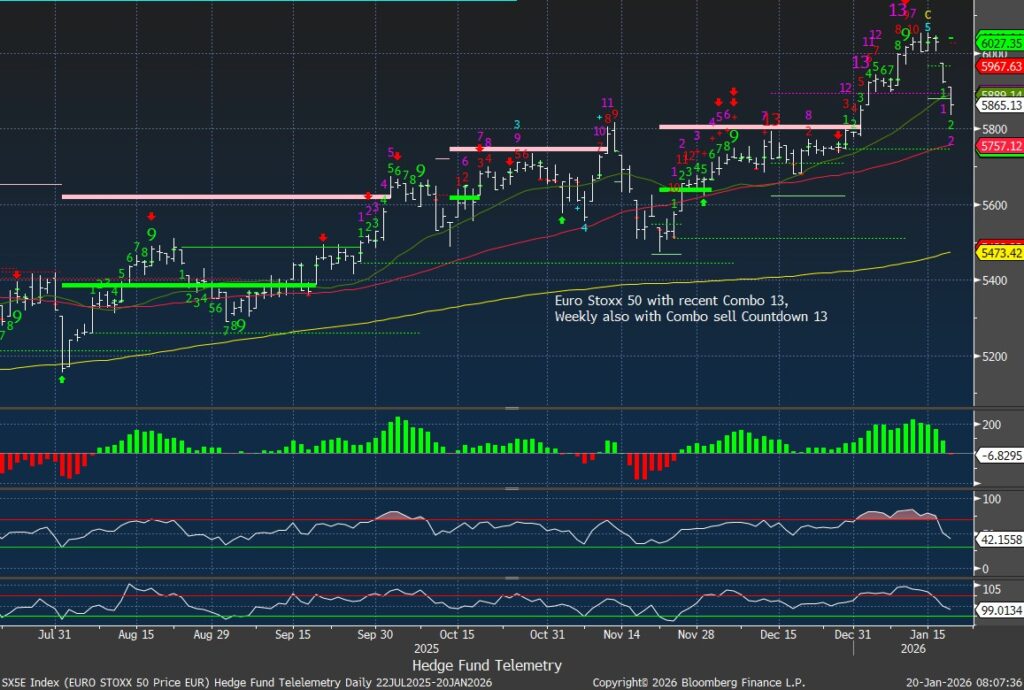 - Trade/geopolitics: Fresh escalation risk tied to Trump’s Greenland tariff threats and potential EU countermeasures.