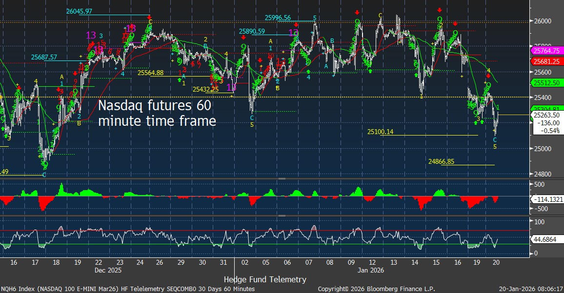 Nasdaq 100 60-minute tactical time frame bouncing off lows in downside wave 5 now