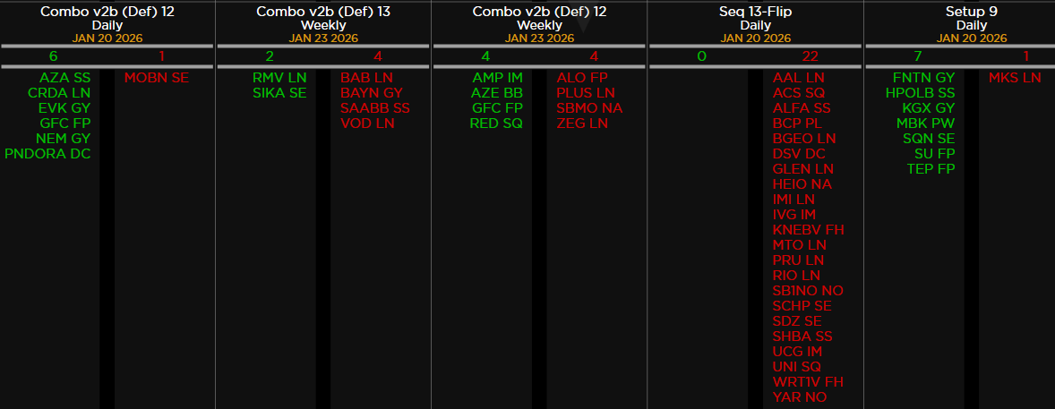 Europe: Heavy selling across major indices with cyclicals, industrials, luxury, and basic resources underperforming. Defensives (staples, insurance, telecom) holding up on a relative basis.