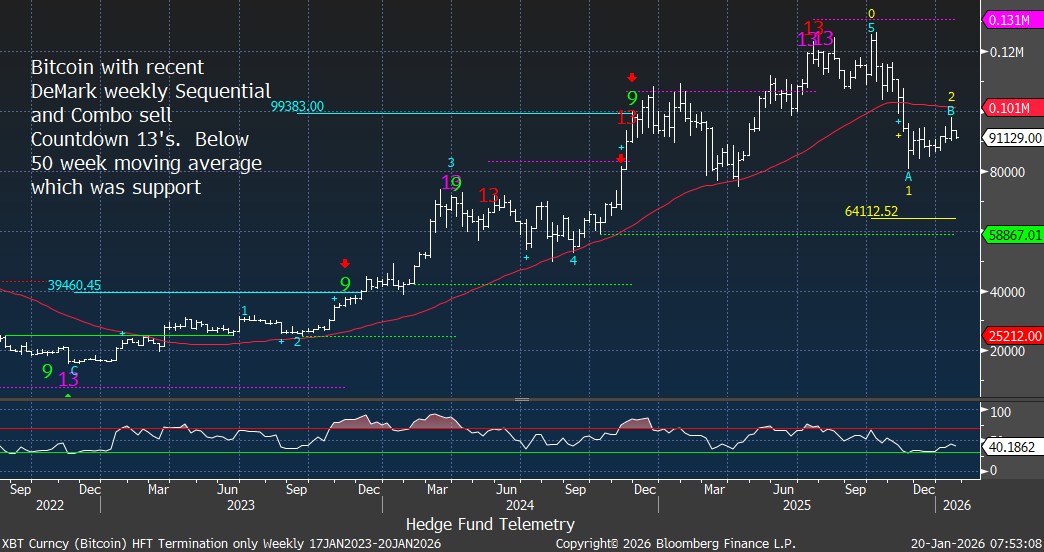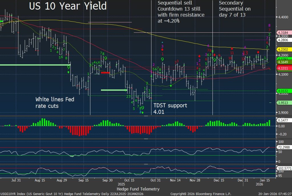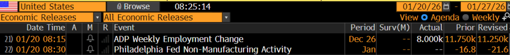 - This week: Focus shifts to Trump’s Davos remarks (Wednesday), Supreme Court proceedings involving Fed Governor Cook, and potential SCOTUS decisions related to tariffs.