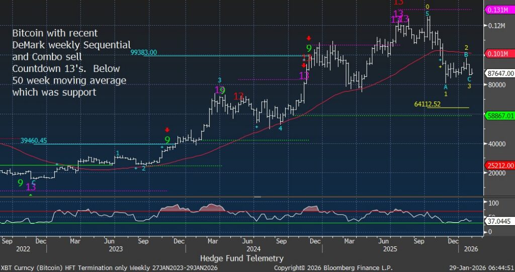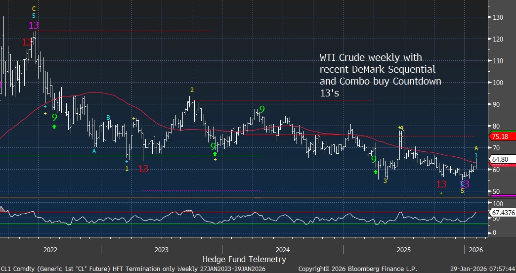 Crude weekly with both Sequential and Combo buy Countdown 13’s at the lows with reversal over 50 week