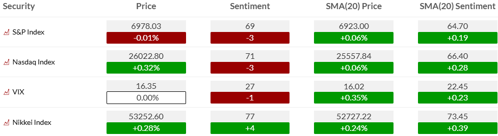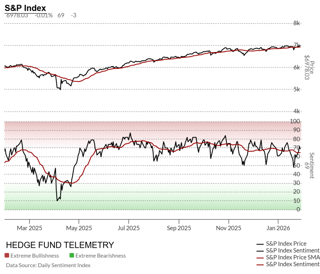 S&P 500 bullish sentiment: ~69%, drifting lower (-3) but still elevated