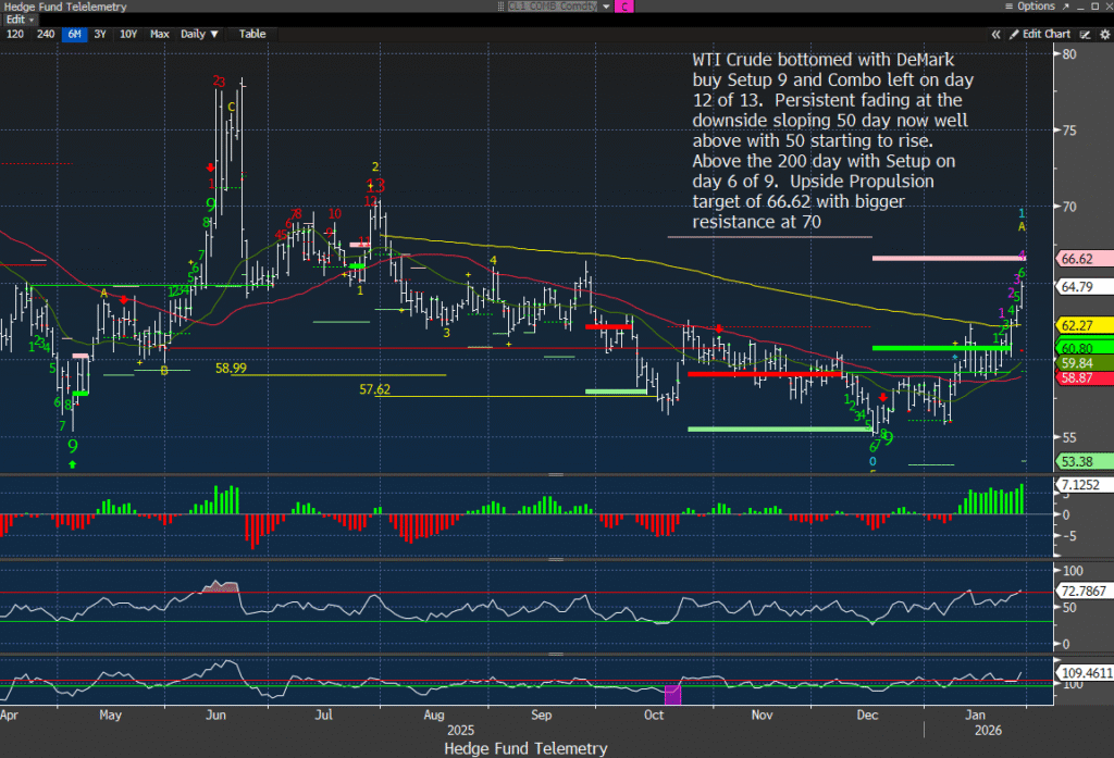 Crude daily is doing all the right things now and could continue to do so. I don’t like it when it is at risk of Iran or something in the Middle East, so if it can lift with other commodities absent geopolitical volatility, then it’s game on.