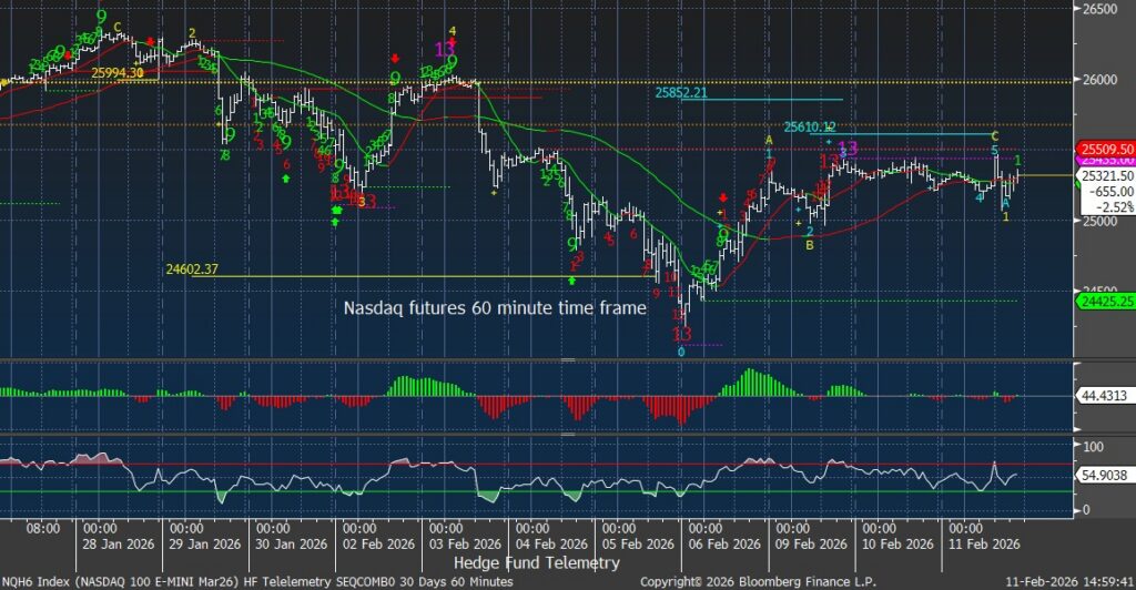 Nasdaq 100 futures 60-minute tactical time frame similar to the S&P 60 minute stalling still after the recent bounce.