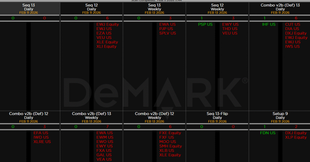 Major ETFs among a 160+ ETF universe.  XLE and XLI with Sequential on day 12 of 13