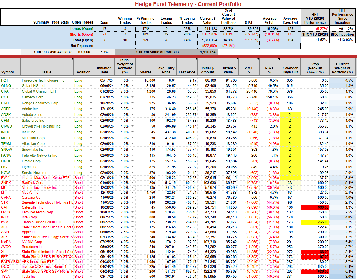 The current cycle is dominated by AI/platform stories centered on “Either this company wins AI…or it’s irrelevant.” I strongly disagree with the “Winner take all” thinking because, of course, AI will disrupt many business models; however, solid companies tend to adapt to new technologies. Yesterday, banks were down on some story of an AI company disrupting the wealth management model – using an AI agent vs a human. Software companies have seen huge declines due to the multiple ways AI will disrupt their models. They certainly have disrupted stock prices, and recently, I’ve started with small positions, with valuations way down and various oversold and exhaustion signals in play. The winner-take-all mentality will likely shift to companies that roll out their own AI initiatives to their existing customer base, which will be accretive to their current revenues. These companies are not looking to disrupt but rather to implement AI within their current offerings with a monetization strategy. Most are increasing capex carefully to enable the transition; however, they are not spending excessively. It’s opened up an opportunity to buy low at historically low valuations, while the riskier bet might be putting money on the hyperscalers who are spending absurd amounts to be that binary winner-take-all. These hyperscaler companies don’t mind spending more than their cash flow allows, even as they now take on substantial debt. Other technology cycles saw companies spend like crazy, creating overcapacity and, in hindsight, waste. The legacy software companies might be AI compounders, and not AI lottery tickets.