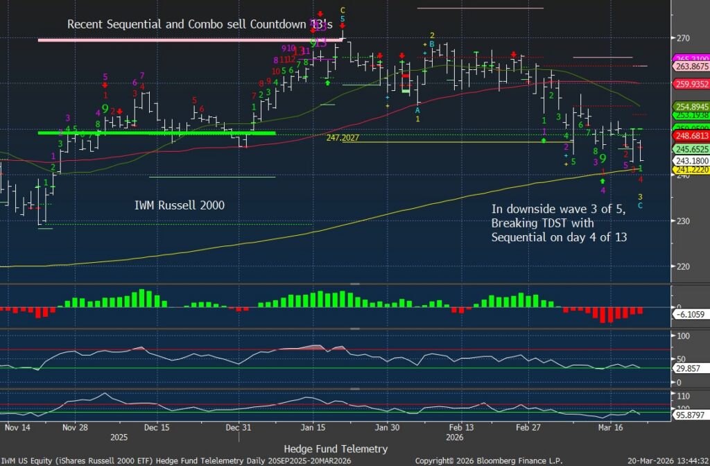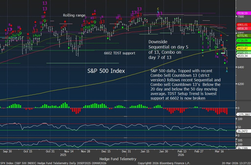 • One of the market themes I reiterated over the last 6 months has been the overweighted positioning into risk assets – notably equities. Retail and institutional inflows have been persistent and large, even with leverage. Each 1% dip was “a generational buying opportunity.” The markets stomached a lot of noise while moving sideways in a range. The Iran war persists despite being told “We won,” “It’s nearly over,” and failing to convince investors with the TACO comments, and now has several key markets breaking.