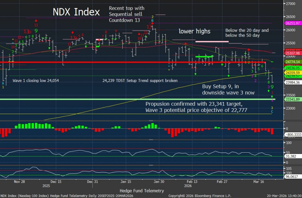 Nasdaq 100 Index daily with comments on the chart. Propulsion downside confirmed.