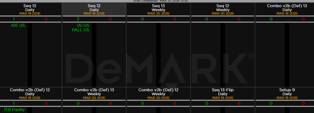 Within the S&P 500, the DeMark Sequential and Combo Countdown 13s and 12/13s on daily and weekly periods. Green = buy Setups/Countdowns, Red = sell Setups/Countdowns. Price flips are helpful to see reversals up (green) and down (red) for idea generation. The extra letters at the end of the symbols are just a Bloomberg thing. Worth noting: Starting to see some buy signals but not nearly enough to turn bias