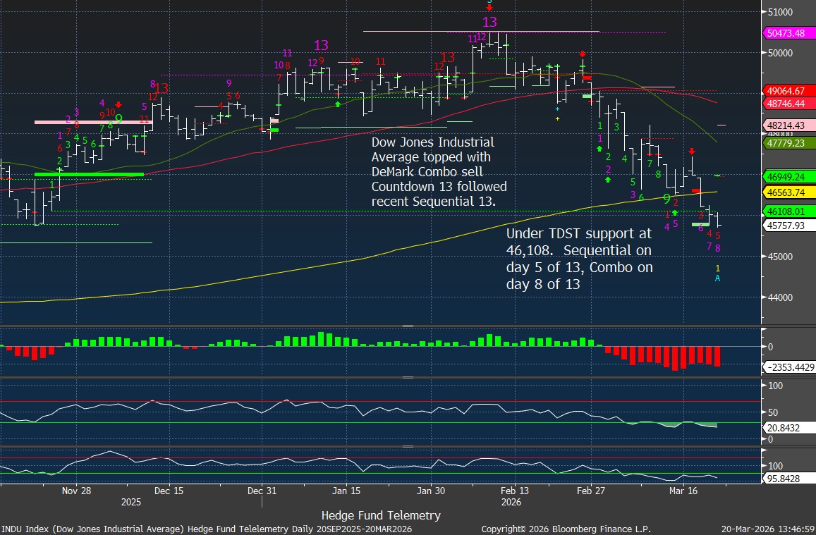 Dow Jones Industrial average with similar downside breakdown and DeMark Countdown in progress