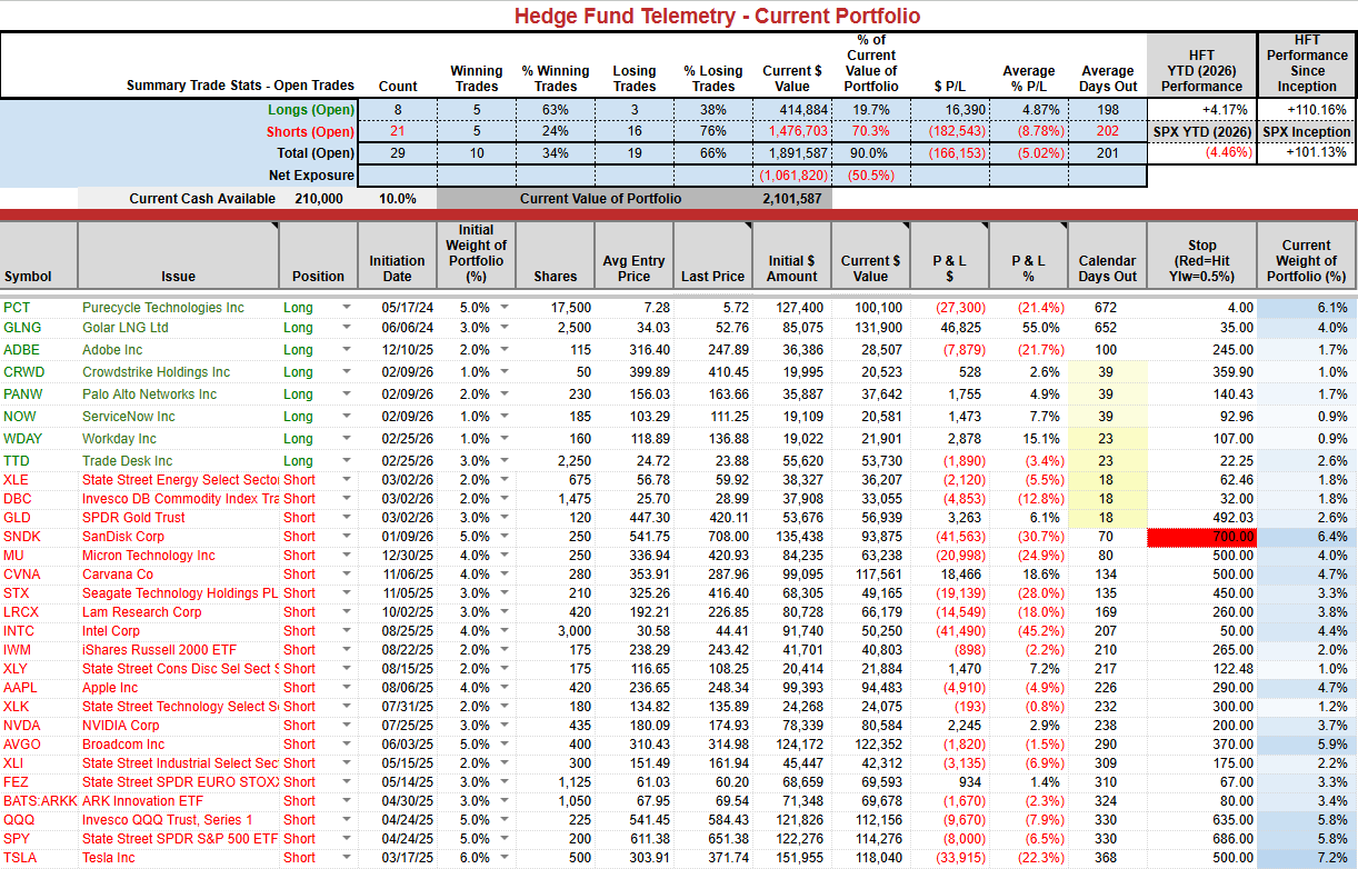 Changes: No changes. I have 10% cash. 50% net short.