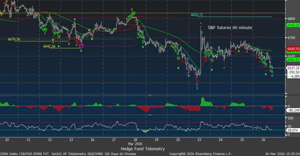S&P futures 60-minute tactical time frame is still above early Monday’s lows at 6500. Below this level and some fear could creep into the markets.