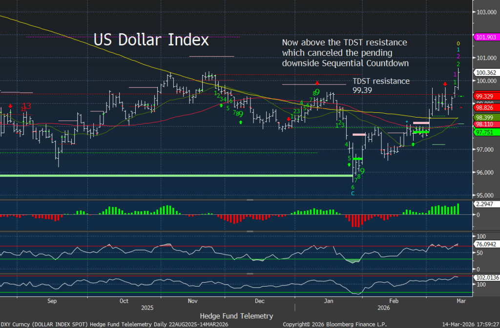 The Dollar Index has broken above TDST resistance on the daily time frame, canceling a pending downside DeMark countdown and signaling a potential shift toward a stronger dollar regime.