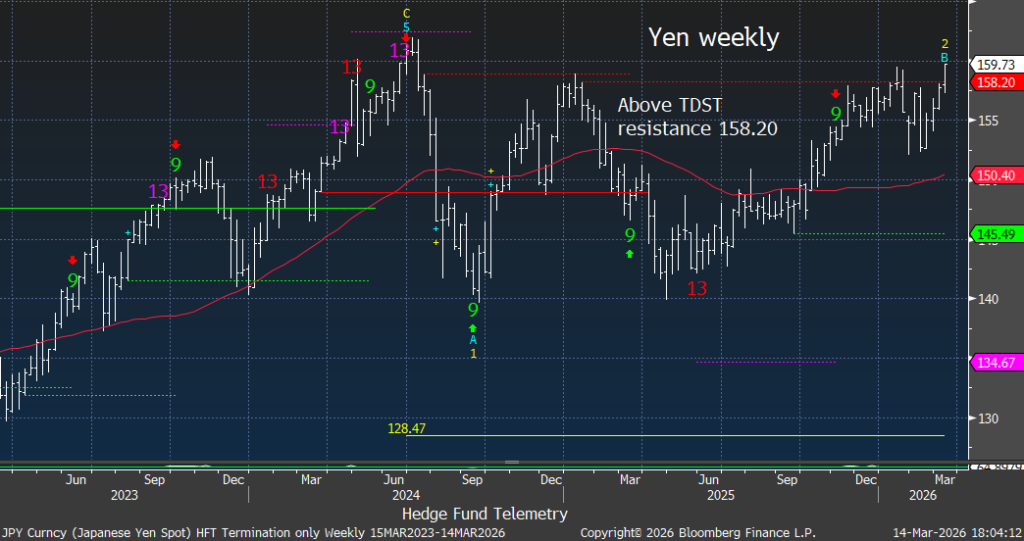 The USDJPY shows Yen weakness vs USD with both the daily and weekly time frame charts.