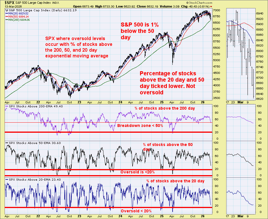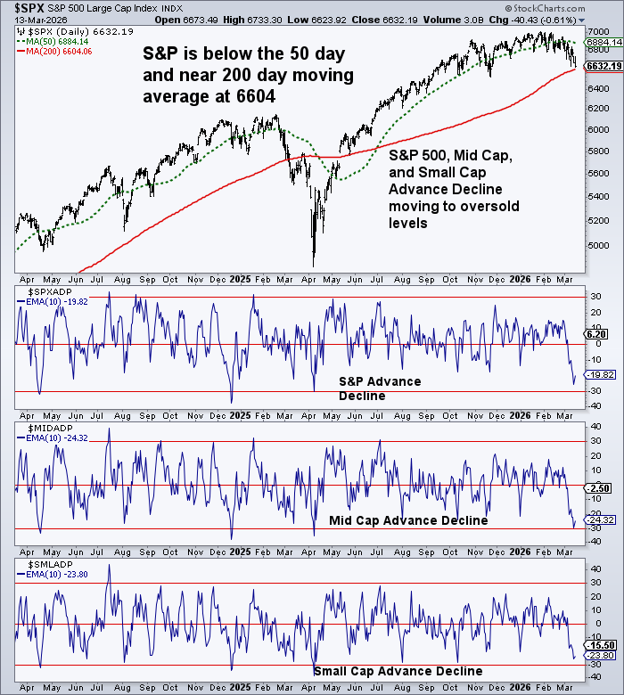 Only about half the S&P remains above the 200‑day moving average, roughly one‑third above the 50‑day, and only about one‑quarter above the 20‑day average. These readings suggest internal distribution rather than healthy consolidation. This has been steady up until the last two weeks and is moving toward oversold levels.